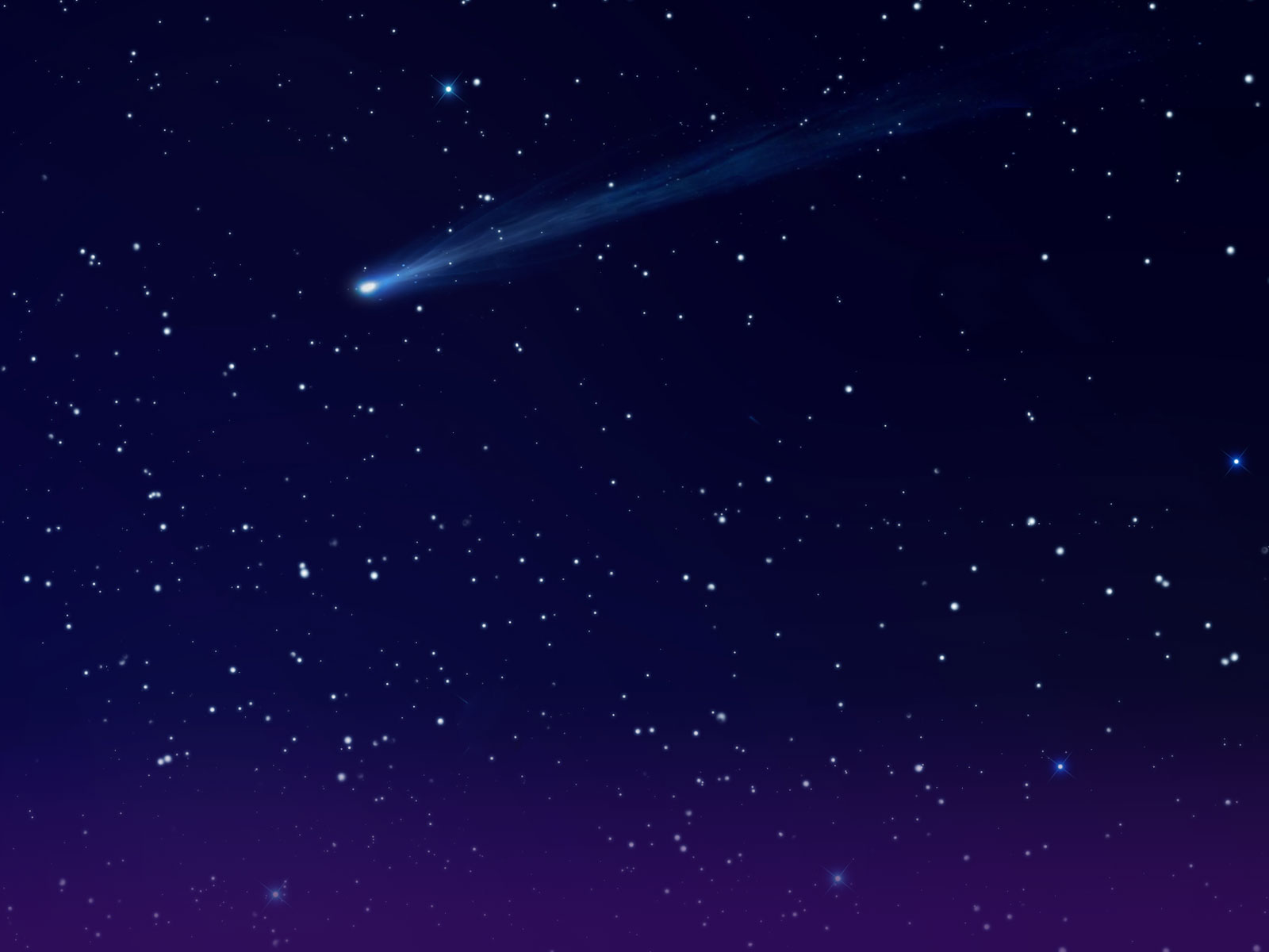 Так это и есть комета, просто в необычном ракурсе — она летит прямо к зрителю, поэтому от ее сияющего хвоста виден только ореол искр. ;)